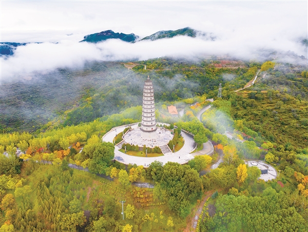 左權縣太行龍泉旅游區磅礴的云海漫過層林盡染的群山