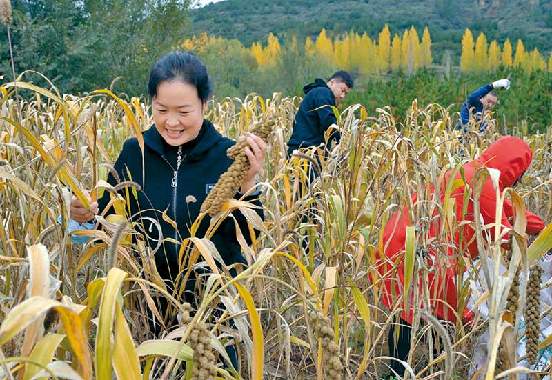 左權縣石匣鄉林河村農民搶收谷子等農作物